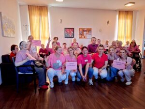 Ružičasta boja simbolizira hrabrost, podršku i spremnost da stanemo jedni uz druge. Naši korisnici rado su sudjelovali u obilježavanju, a djelatnici su dodatno istaknuli važnost stvaranja sigurnog i poticajnog okruženja – kako u domu, tako i izvan njega.