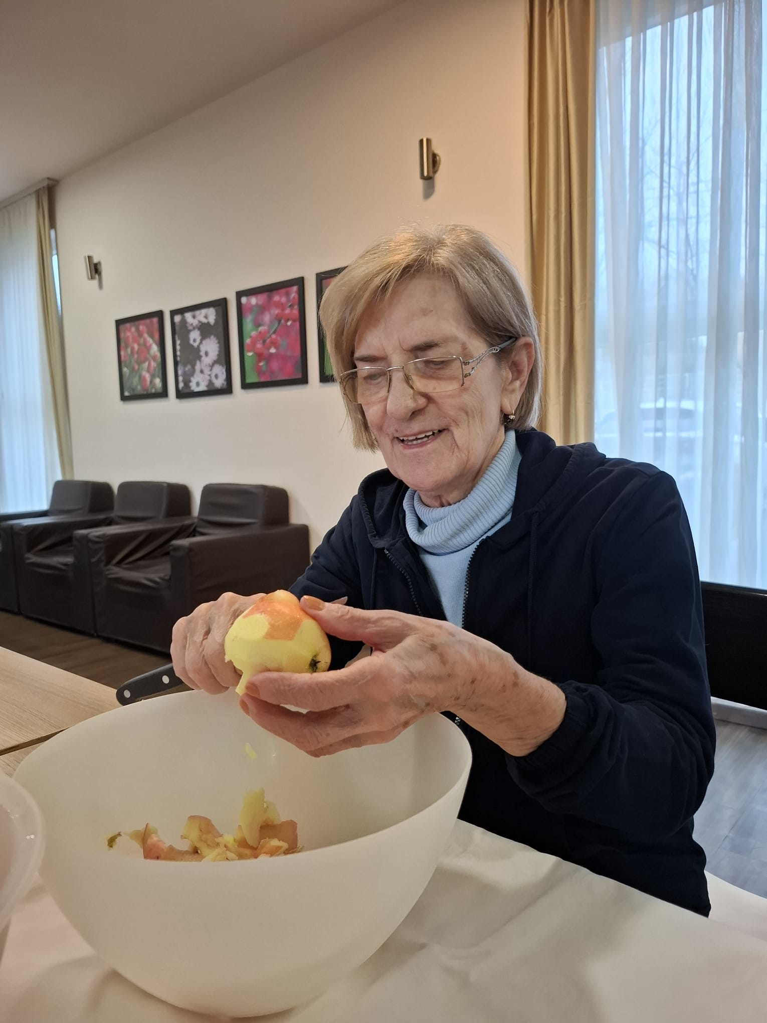 Poseban dio kulinarskih radionica bio je posvećen radu s jabukama. Jednostavna aktivnost, ali bliska i prepoznatljiva, mnoge je korisnike podsjetila na domaće recepte i navike iz prošlosti. Rad s namirnicama koje su svima poznate olakšava uključivanje i potiče osjećaj sigurnosti.