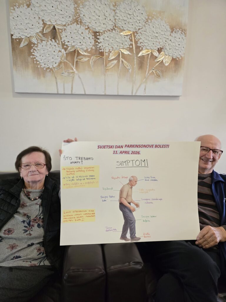 Parkinsonova bolest je kronična i progresivna neurološka bolest koja prvenstveno utječe na kretanje, a povezana je s nedostatkom dopamina. Može se očitovati kroz tremor, usporene pokrete, ukočenost mišića te poteškoće s ravnotežom i hodanjem. Upravo zato u našem domu naglasak stavljamo na aktivnosti koje potiču pokretljivost, stabilnost i osjećaj sigurnosti.