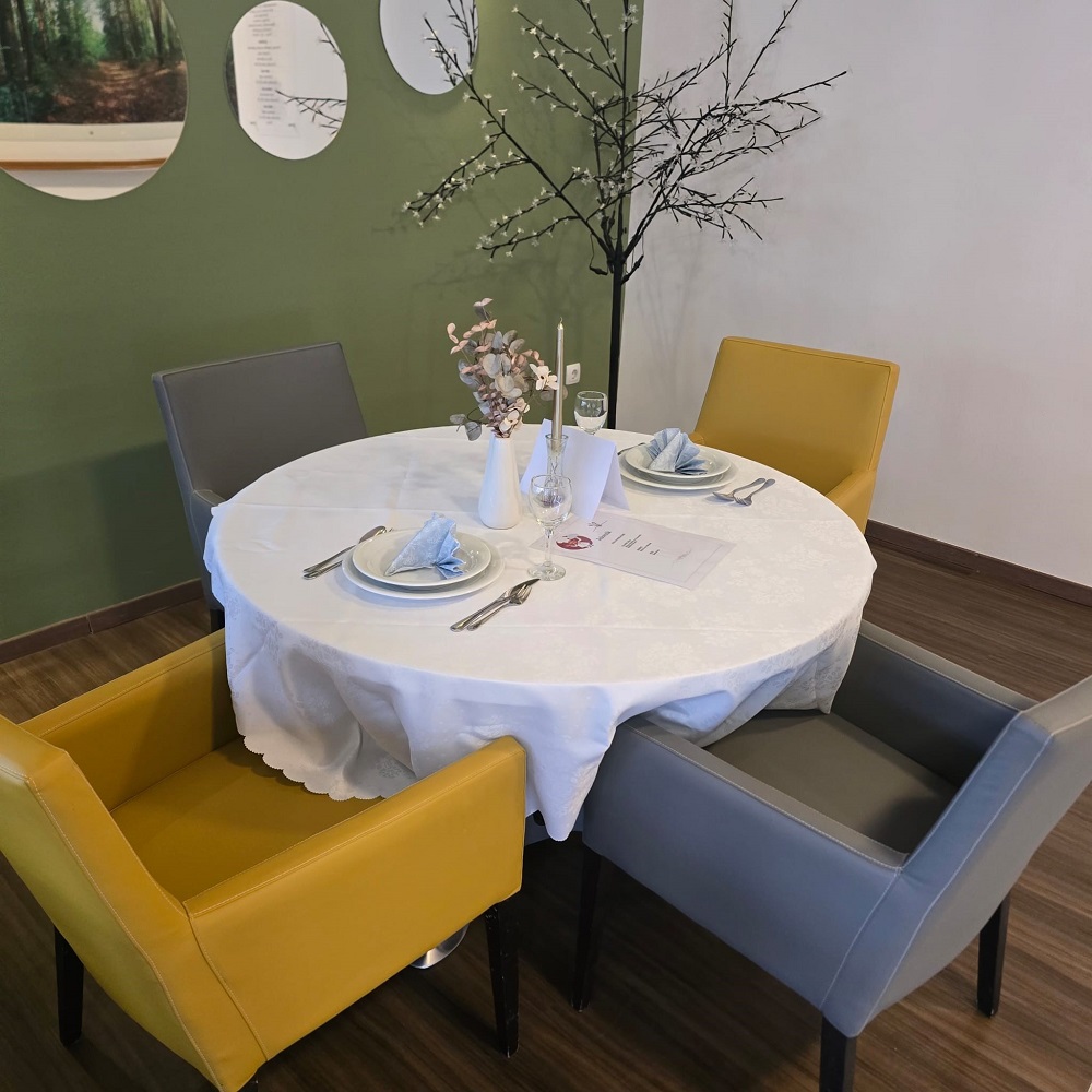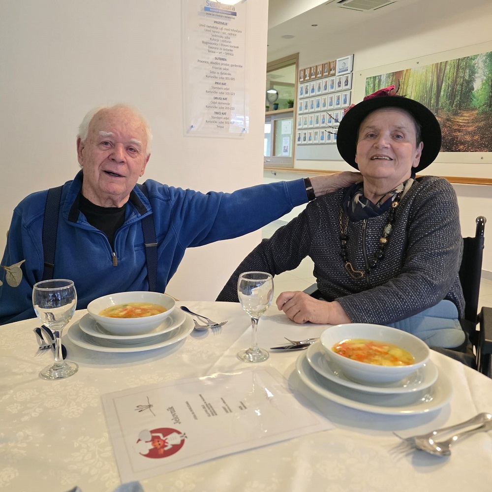 U SeneCura domu za starije Novaki Bistranski organizirali smo “Večeru uz svijeće” za naše drage korisnike Petra i Dragicu. Uz svečanu dekoraciju stola, poslužen je i svečani meni: juha s noklicama, pohana piletina na talijanski, zelena salata, štrudla od višanja te je na kraju poslužen šampanjac.