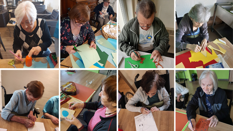 Kreativne radionice SeneCure uključuju primjenu različitih oblika likovnog izražavanja: crtanje, slikanje, izradu kolaža, izrezivanje različitih oblika i druge zanimljive aktivnosti. Ovakvim aktivnostima održava se fina motorika i jačaju kognitivno-perceptivne funkcije, a kreativno izražavanje je i važan element radne terapije koju redovito provodimo s našim korisnicima. Radna terapija je namijenjena osobama čije su sposobnosti obavljanja svakodnevnih aktivnosti umanjene ozljedom, bolešću ili starenjem, a njen cilj je povećati funkcionalnost pojedinca u dnevnim aktivnostima, potaknuti produktivnost i na zabavan način popuniti vrijeme. Kao i uvijek, u svim našim aktivnostima imamo podršku stručnjaka, pa je tako u ovom tipu kreativnih aktivnosti uz korisnike uvijek naša radna terapeutkinja.