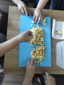 U SeneCura domu za starije Novaki Bistranski nastavljamo sa serijom radionica “Gastro kutak”, ovaj puta smo pripremili kolač od jabuka. Naše vrijedne korisnice zdušno su se prihvatile dasaka i rezanja te smo u tili čas napravili ukusan kolač od jabuka, u čijem smo degustiranju svi zajedno uživali.