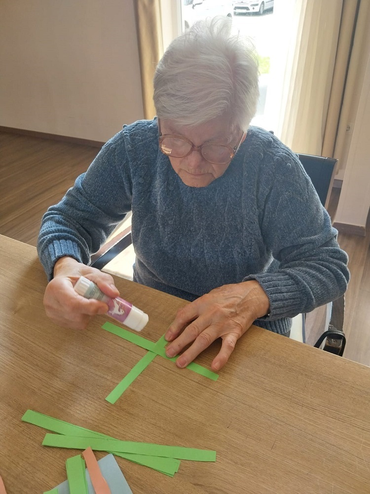 Korisnici SeneCura doma za starije Novaki Bistranski izrađivali su uskrsne zečiće. Animatorica Bojana pomagala im je napraviti šarene zečiće od kolaž papira. Rezali smo trakice u raznim bojama te ih potom lijepili. Na posljetku smo dobili uskrsne zečiće različitih boja. Dekoracije koje smo izradili koristit ćemo za ukrašavanje stolova u blagovaonici. Spremamo se za Uskrs.